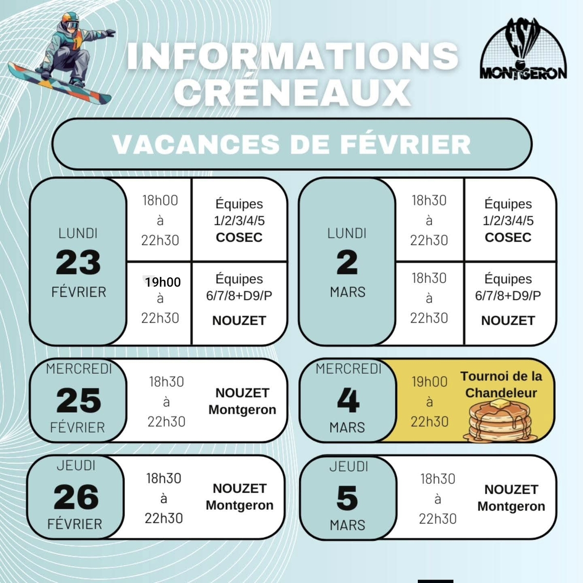 Vous trouverez en photo les créneaux des vacances d'hiver 🏸